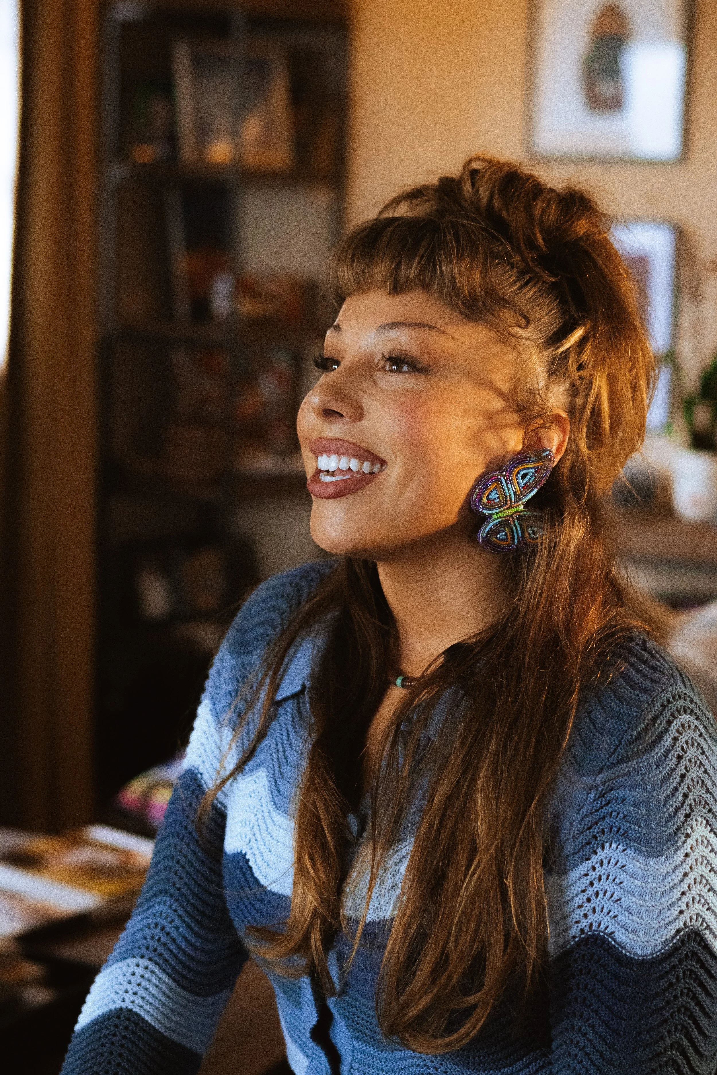 During the Pandemic, Tayler started gaining notoriety online as an influencer creating beaded collections by hand, sharing Native fashion, beauty and aesthetic content, and collaborating with several artists and businesses. Notably, she was invited by Native artist/designer, B. Yellowtail, to join their Native Artisan Collective, and featured by Etsy as part of their “Uplift Makers” program alongside other Indigenous artists worldwide. Her work has been recognized and featured in publications such as “The New York Times,” “Health Magazine,” “O’siyo TV,” and “The Cherokee Phoenix.” Tayler continues to share her beadwork with The Spider Gallery in Cherokee Nation, Oklahoma, and The Museum of the Cherokee Indian in Cherokee, North Carolina. In 2023, she was selected as a mentor for The Cherokee Women’s Accelerator program, which aimed to encourage and provide resources to Cherokee women business owners.